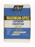 PMP® MAXIMUM-SPEC Lightweight Concrete Mix is ideal for both structural and non-structural applications over 2 inch (50 mm) thick. PMP® MAXIMUM-SPEC Lightweight Concrete Mix is specifically formulated to produce a higher strength and greater coverage than standard concrete mix.